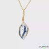This exquisite pendant features a dumortierite centerpiece, expertly carved into a marquise-inspired shape with a natural rough cutting style that highlights its organic texture and vibrant translucency. Set in high-polish 14kt gold filled yellow gold, the design utilizes a minimalist tension-style arrangement to showcase the gemstone's unique composition. The rich blue hue contrasts beautifully with the warm metallic luster, creating a sophisticated piece of fine jewelry perfect for any collection.